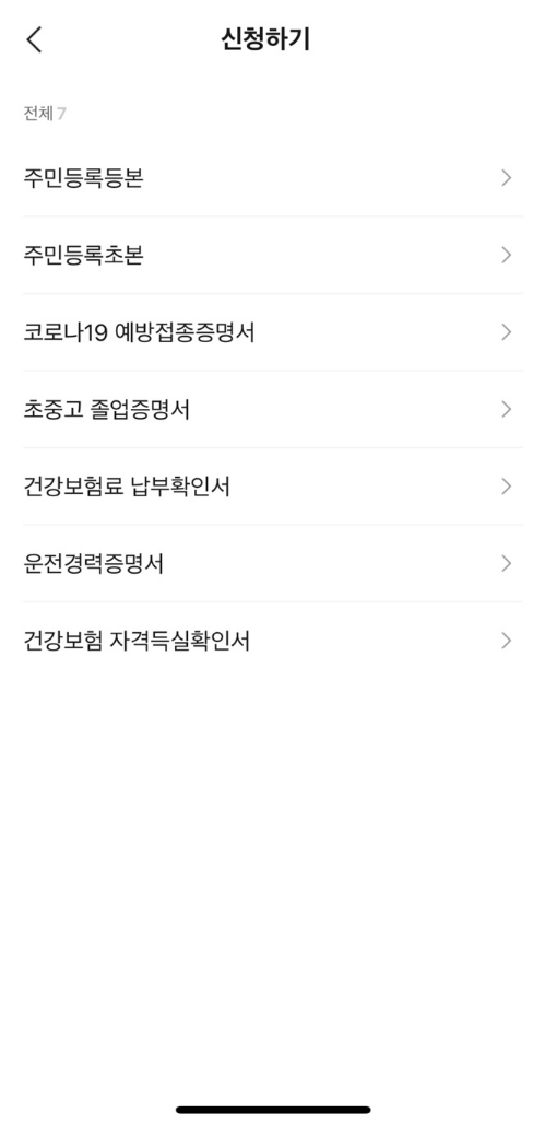 저는 예시로 "코로나19 예방접종증명서"를 클릭했습니다.