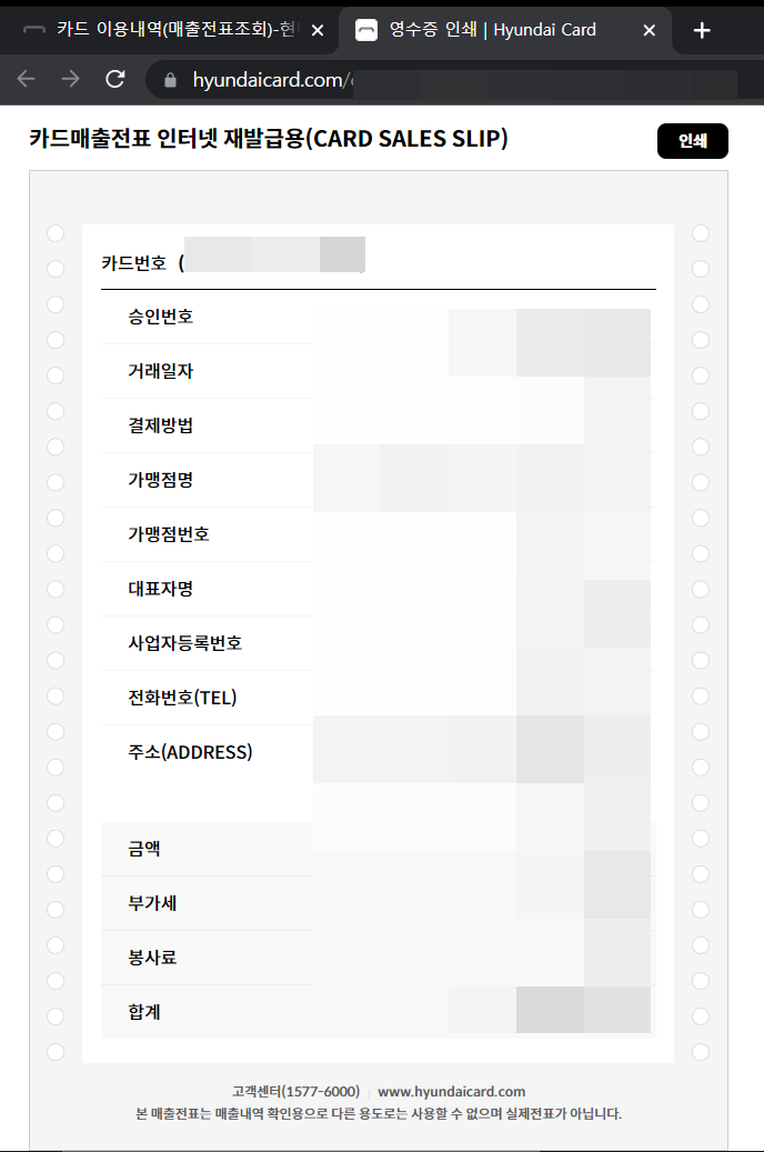 다행히도 카드 영수증은 카드사 홈페이지/카드앱에서 간단히 재발급받으실 수 있어요.