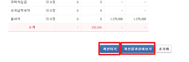 6. [계산하기] 버튼 클릭 후 [계산결과상세 보기] 버튼을 클릭합니다.